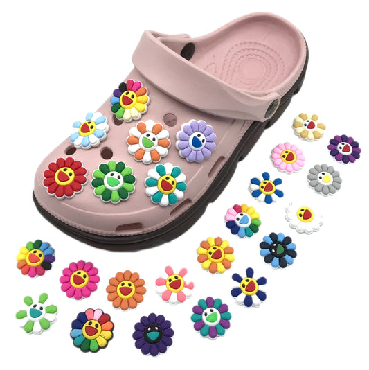 25pcs Flower Pattern Shoe Charms for Clogs Jibts Bubble Slides Sandals, PVC Shoe Decorations Accessories for Christmas Birthday