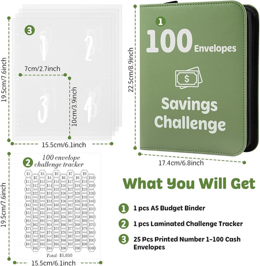 100 Envelopes Challenge Binder,A5 Money Saving Budget Binder-Easy & Fun Way to Save ,Savings Challenges Book with Cash Envelopes for Home,Office,School