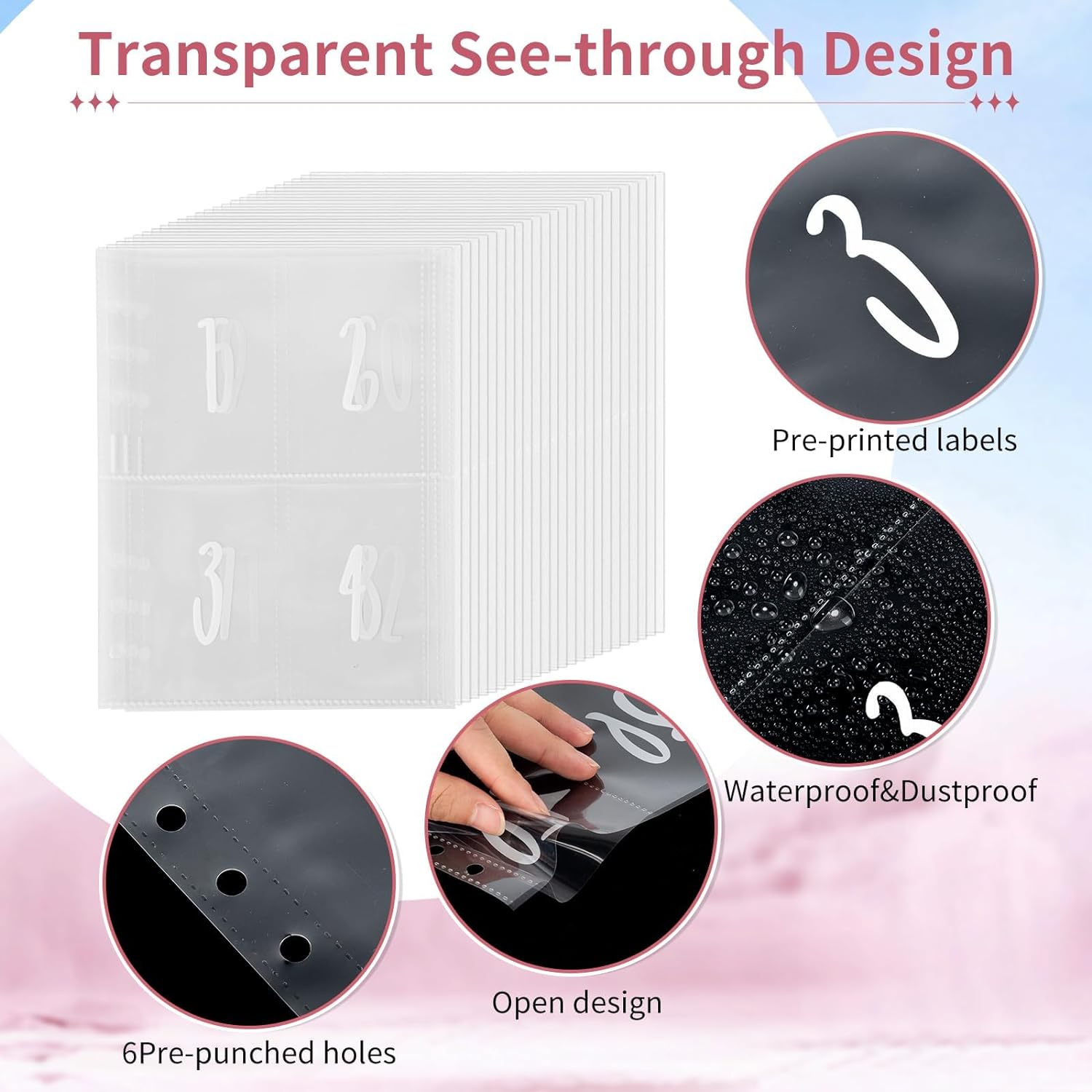 - Premium Materials: The thickened PU leather envelope challenge binder is scratch-resistant, with neat stitching and a comfortable feel. The 100 cash envelope slots are made of durable transparent PVC material, with clear pre-printed numbers 1 to 100. waterproof and tear-resistant, protecting your items from water and dust, ensuring their durability throughout your savings challenge journey.