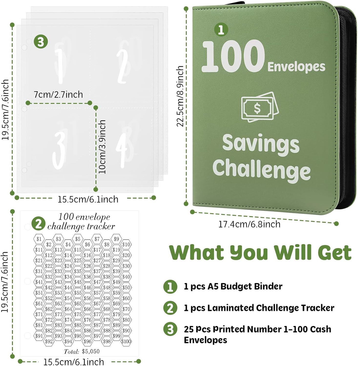 - WHAT YOU WILL GET: 1pc PU leather A5 size binder, 25pcs 3-hole cash envelopes pre-printed number with 1-100, 1 reusable laminated sheet tracker of $1 to $100. Use our money saving binder to manage your finances effectively.