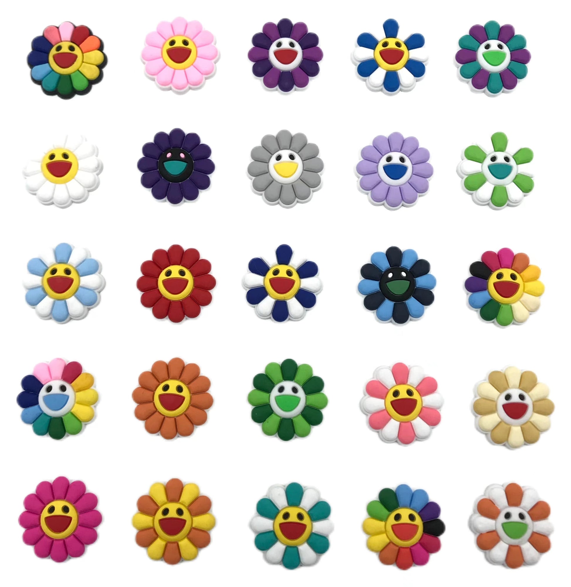 25pcs Flower Pattern Shoe Charms for Clogs Jibts Bubble Slides Sandals, PVC Shoe Decorations Accessories for Christmas Birthday