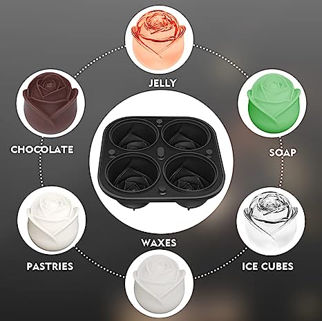 🧿【Multi-Purpose】Rose Ice Mold not only to chill your drink, but also can be as Cake Baking Molds, Candy Molds, Soap Molds, Candle Mold and other DIY handmade molds.