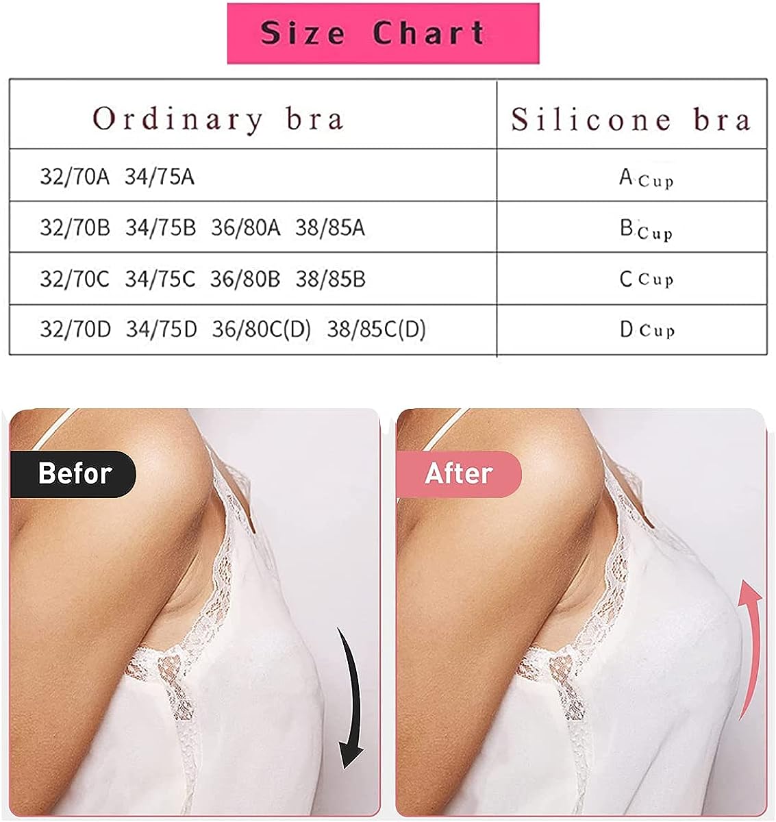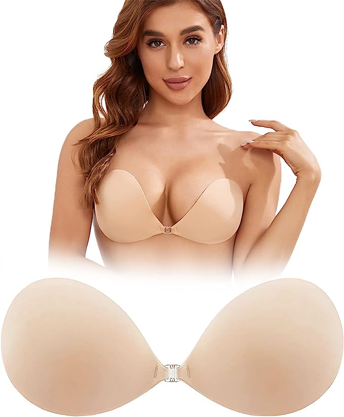 - Pushing-up Function: The adhesive bra with the strong front clip gathers and lifts your breasts, supplying you with fuller breasts. The strapless sticky bra has a design with deep V-shaped cleavage, making your curves of breasts look stereoscopic.