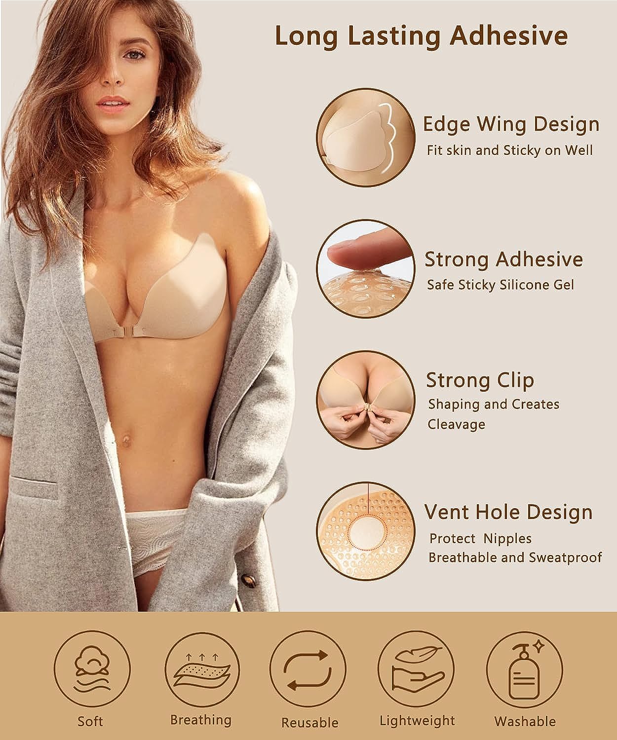 - [Washable and Reusable] - Our adhesive bras are self-adhesive and remain sticky after being washed and air-dried. It can be used multiple times, making it a cost-effective and eco-friendly choice."