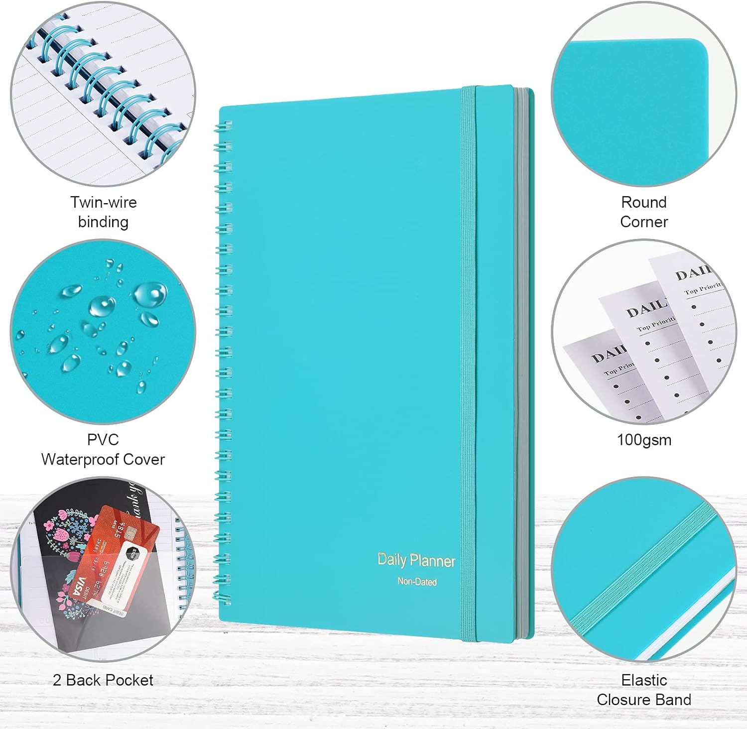 - Funtional Details:Sturdy PVC cover help protect the planner,elastic band keep the notebook close nicely or you can use the elastic closure to mark your page, two pocket in the back stroage your note receipts and cards,twin-wire binding allows turning pages smoothly and laying flat.