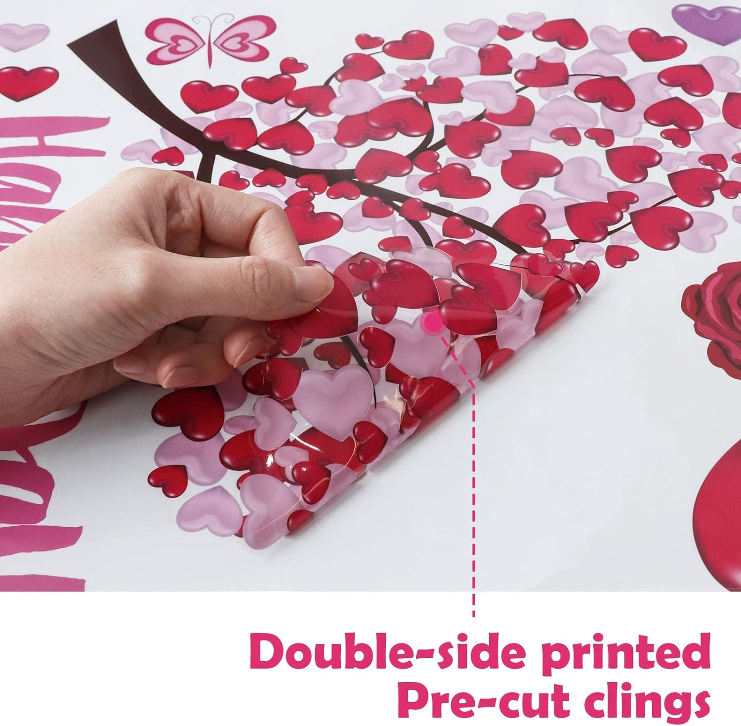 - LARGE & PLENTY: The largest heart tree size 12.5 inch high. A total of 117 ct pre-cut Valentines Day window clings ready to apply. Cover huge space, DIY layouts on all glass windows!