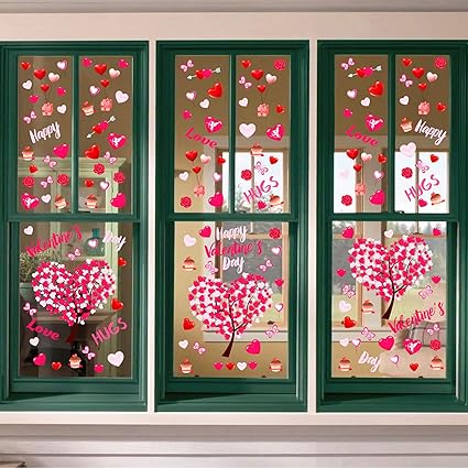 - DOUBLE-SIDED: Same visual effects inside & outside of windows. Made with PVC material printed on BOTH sides. Great Valentines day decorations for kids!