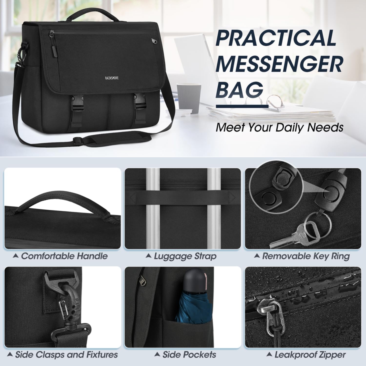 - 💼【Durable Messenger Bag】 This messenger bag is made of durable, scratch-resistant and water resistant polyester fabric. Messenger bag for men equipped with smooth zipper and sturdy handle, plus the reinforced stitching at each stress point, make this laptop bag more durable for long-term use. Also, the briefcase has a front pocket which adopts leakproof zipper design can protect your belongings in rainy days.