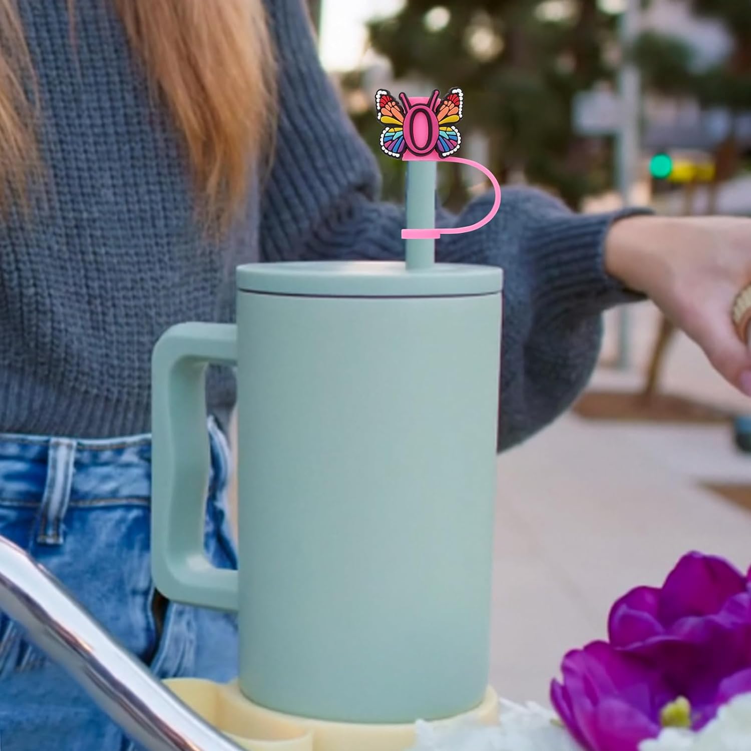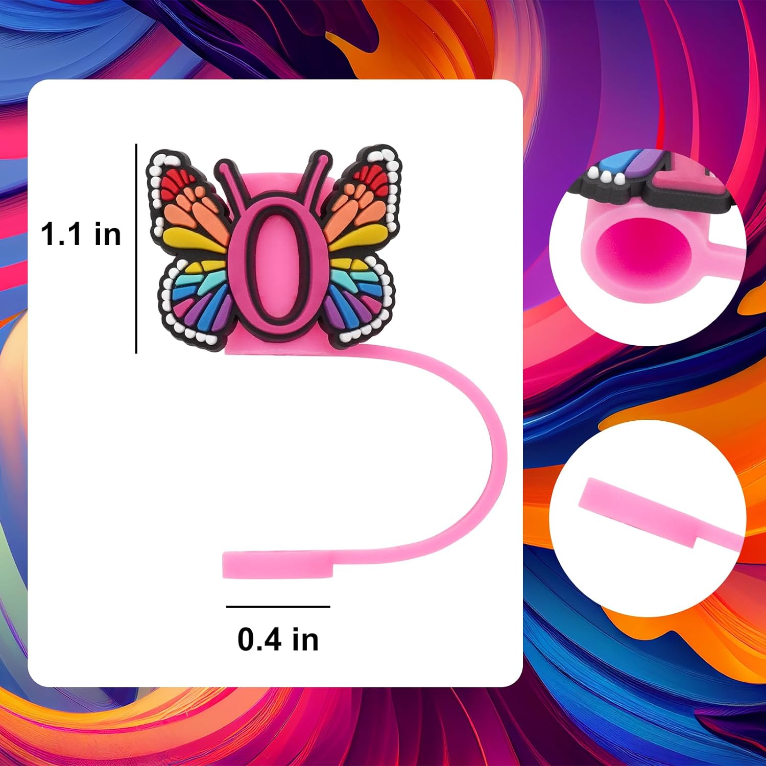Silicone Straw Cover for Stanley Cup, Initial Letter Straw Cover, Beautiful Butterfly Style, Compatible with Stanley 40&30 Oz Tumbler (O)